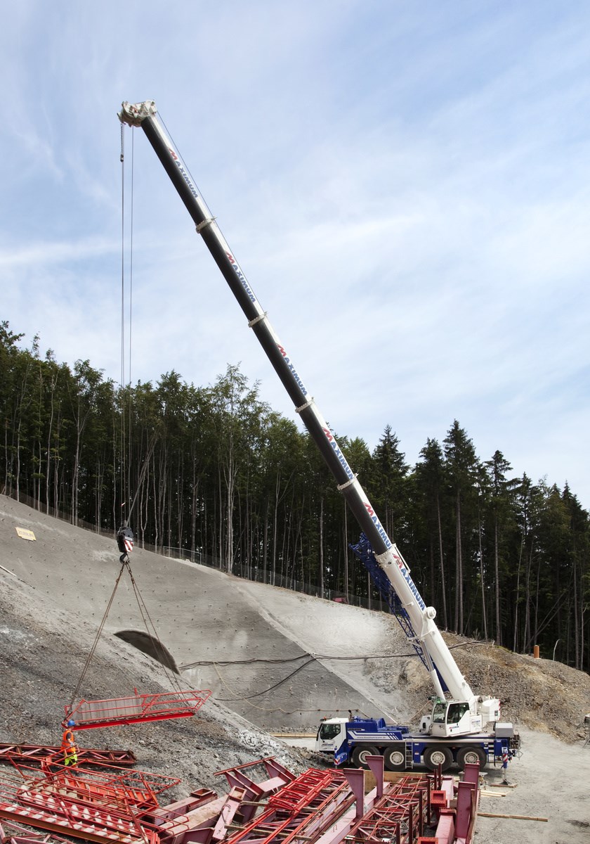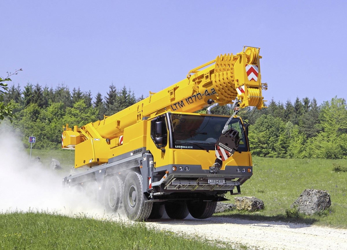 4-осный кран LTM 1070-4.2 при движении по дорогам везёт основную часть своего балласта с собой. Поэтому на стройплощадке он сразу готов к работе. Он оснащён самой современной техникой, такой как активное рулевое управление задними мостами и пневматические дисковые тормоза.